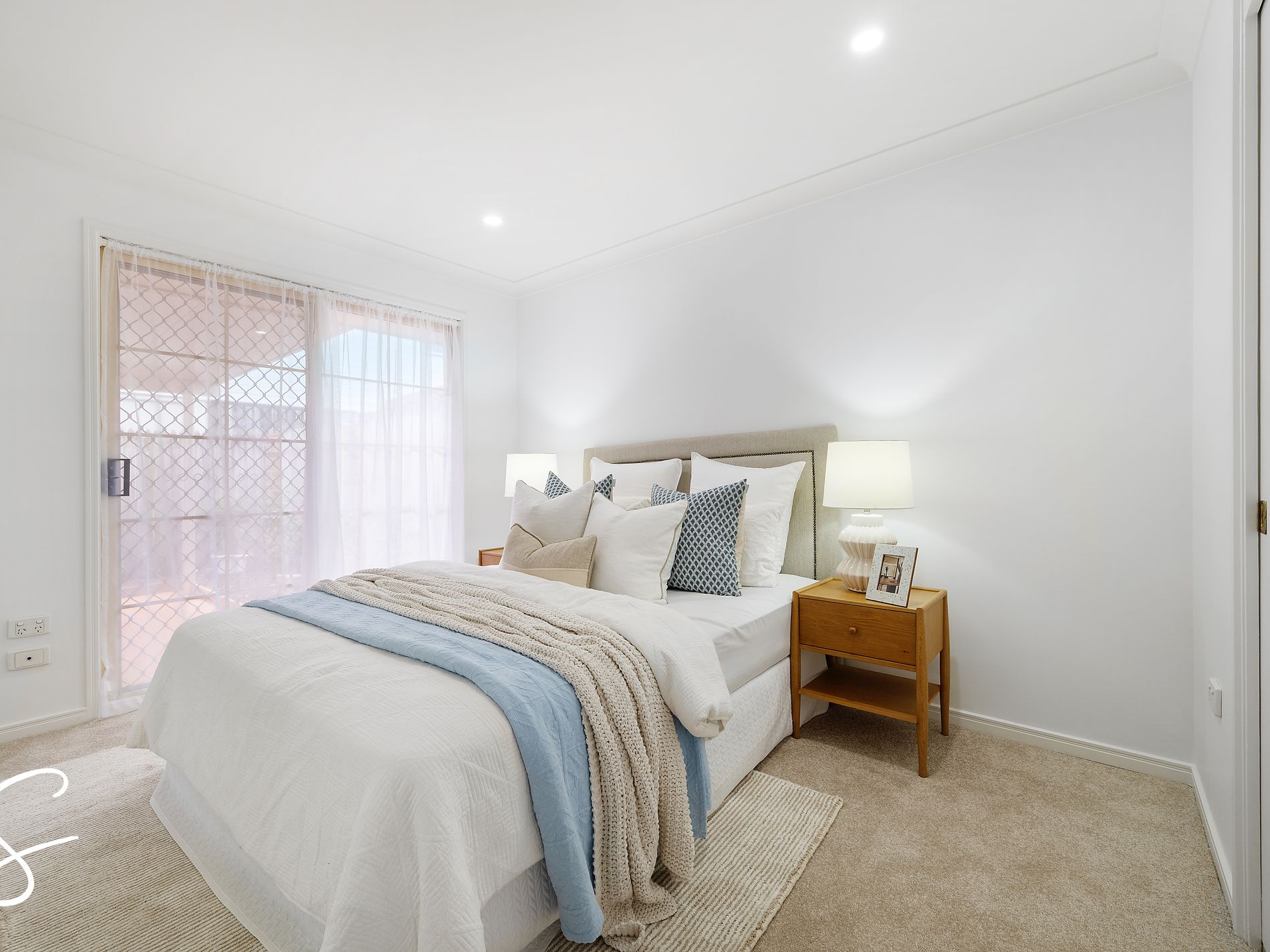 The home is air-conditioned and freshly carpeted and painted throughout, meaning there is nothing left to do but simply move in and enjoy the comfort, peace and quiet. Offering two generous bedrooms, all featuring built-in robes, the master suite also includes two-way access to the main bathroom for ease of living